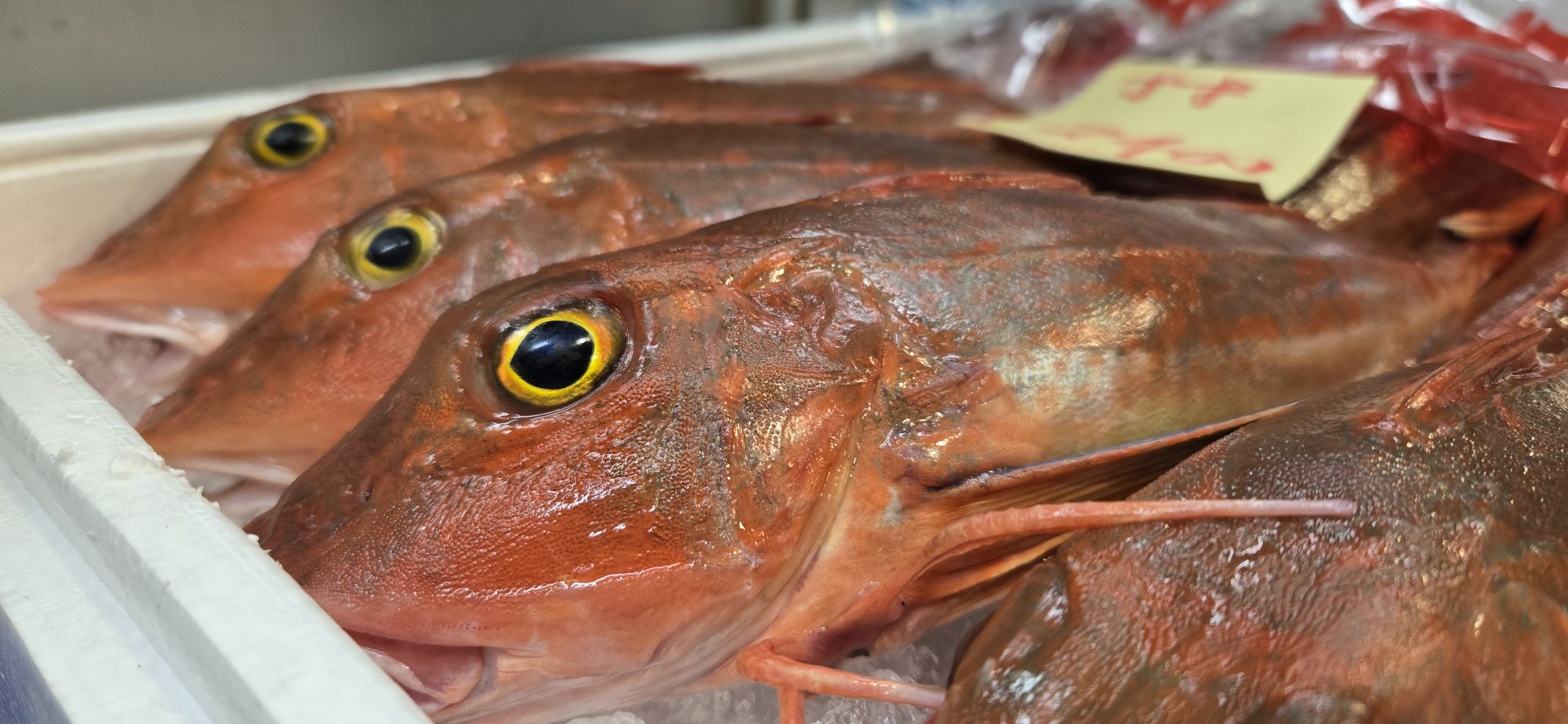ほうぼう(長崎)、あじ(鹿児島)、かつを(和歌山)、いわし(岩手)、メジマグロ(山口)、真ダコ(宮城)、関さば(大分)、金目鯛(千葉、銚子)、白子(北海道)、目光(千葉、銚子)、生ホタルイカ(富山)、天然カンパチ(長崎)、ヤリイカ(宮城)、赤貝(山口)、わかめ(三陸)、など!他多数‼️